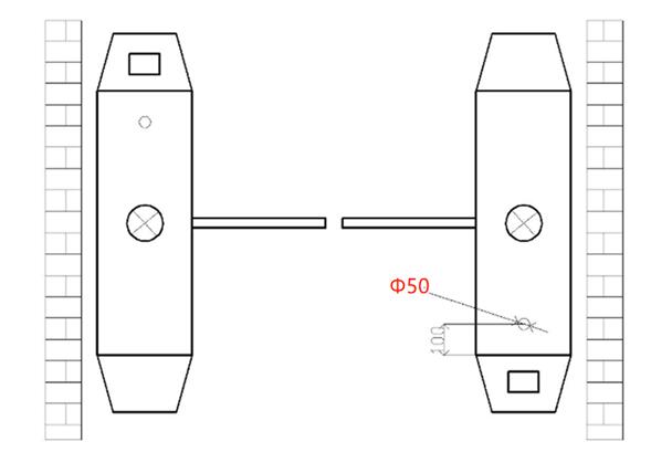 閘機上的開孔直徑為50mm(已預(yù)留無需增加間隙)